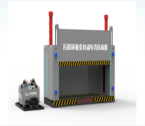 其次,压扁机在处理报废车辆时具有更好的适应性。报废车辆的部件形状各异,大小不同,而压扁机能够灵活地调整工作参数,以适应不同形状和尺寸的部件。无论是长条形的车架还是扁平状的车身,压扁机都能够轻松地进行处理。而压块机则对部件的形状和尺寸有一定的要求,对于某些特殊形状的部件,可能无法进行有效的压块处理。