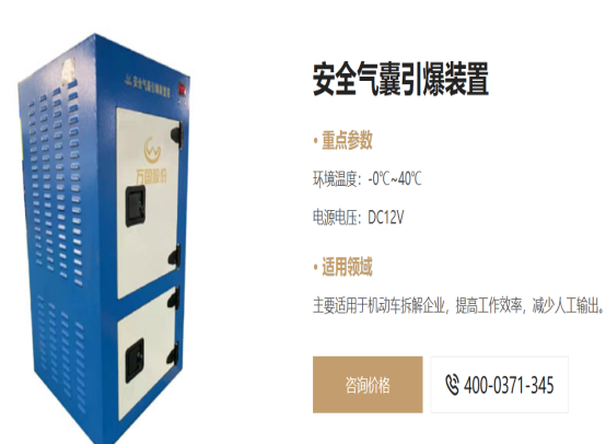 安全气囊爆破装置是一种专门用于在报废车拆解过程中安全处理安全气囊的乐动注册大厅-乐动(中国)。它采用先进的爆破技术,能够在短时间内将安全气囊内的气体和化学物质安全地排放到大气中,从而消除安全隐患。这一装置不仅操作简单,而且安全可靠,是报废车拆解过程中不可或缺的重要工具。