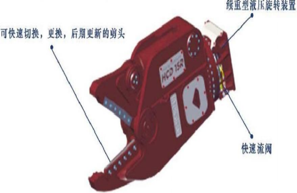由挖机装配鹰嘴剪组成,可以轻松完成对卡车大梁等坚固物品的剪切。