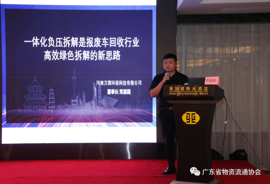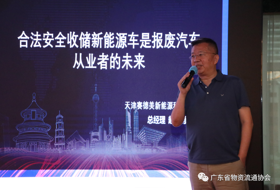 天津赛德美新能源科技有限公司总经理赵小勇从新能源电池拆卸的安全生产要求、信息溯源、价值估算等方面向参会企业做了详细介绍,并针对报废机动车回收拆解企业提供个性化合作方案,发挥企业自身优势从而达到互利共赢的目的。