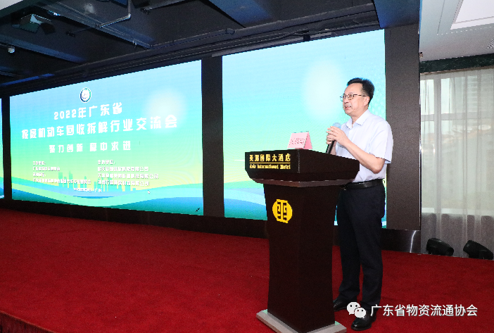 为引领带动再生资源行业实现绿色循环发展,同时促进企业间的经验交流和提高企业管理水平,“2022年广东省报废机动车回收拆解行业交流会”于8月4日在广东亚洲国际大酒店顺利召开,来自省内外共140余位代表出席。会议邀请了广东省商务厅贸易管理处四级调研员罗赵汉、中国物资再生协会会长许军祥、中国物资再生协会装备与信息化秘书长冯玉霞、中国物资再生协会会员部主任刘淼、广东省固体废物和化学品环境中心副主任苏闯、华南师范大学教授南俊民、广东省环境保护产业协会高级工程师林仰璇、广州市黄埔海关技术中心高级工程师冯文希到会指导,会议由广东省物资流通协会会长吴伟南主持。