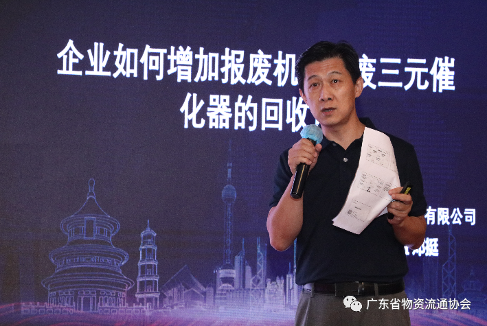 韶关铂瑞环保科技有限公司业务总监邓挺就报废机动车废三元催化器的回收做了详细介绍。数据显示:2021年广东省仅有不到100吨的三元催化器转到有资质的处理公司,约70%-80%的汽车三元催化粉末不知所向。很多机动车在报废前三元催化器被盗被换,大量三元催化器流入黑市,给环境污染造成了无法预估的危害。他表示将联合广大报废机动车回收拆解企业,通过提高价格服务等方式,从而提高报废机动车废三元催化器的回收量,进而履行企业的环保义务和责任。