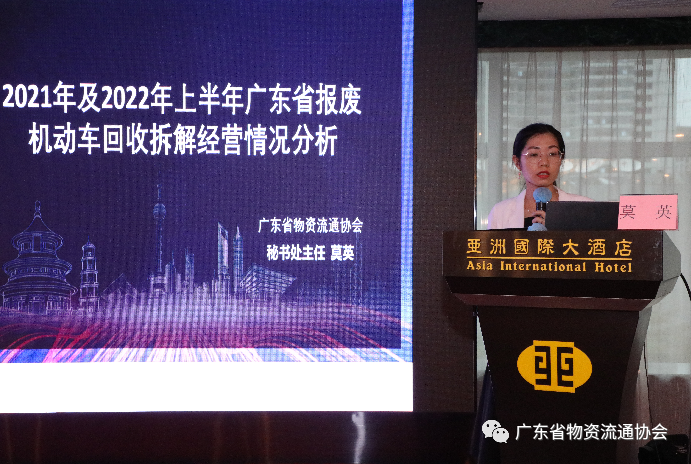 广东省物资流通协会主任莫英汇报了《2021年及2022年上半年广东省报废机动车回收拆解经营情况分析》:2021年我省报废机动车回收量保持较好增势,一是由于新增了资质企业,正规回收渠道扩增,社会车辆能够回流到正规的资质企业进行报废;二是我省实施的“以旧换新”财政补贴政策有促进作用;三是部分企业借助新媒体平台,加大了正规报废机动车回收企业的宣传力度。2022年上半年由于多重原因,我省报废机动车回收总量同比下降明显,但是报废汽车的数量和比例有所提升。