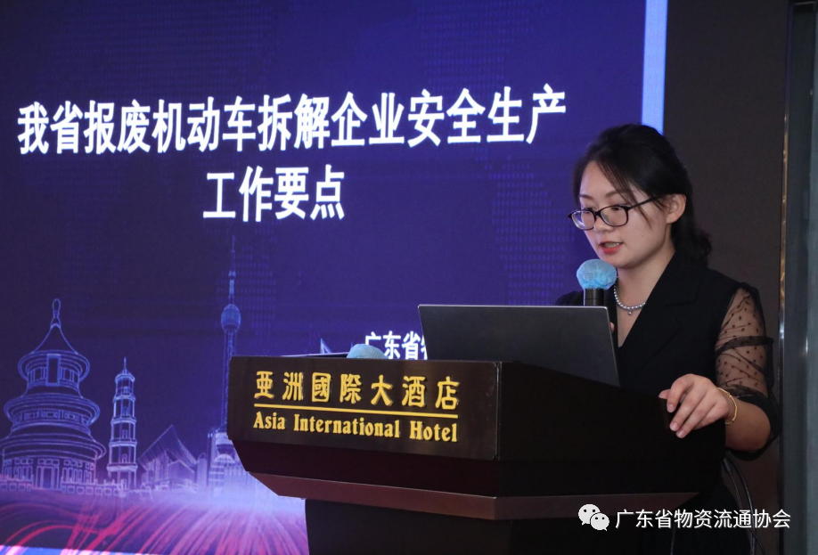 广东省物资流通协会副秘书长夏莉在会上强调了安全生产工作的重要性,并对具体工作要求进行了细致的讲解。在省商务厅的正确领导和指导下、在各企业的通力配合下,通过加强企业安全生产培训、演习,提高安全生产意识,加大安全生产投入,我省报废机动车回收拆解行业安全生产工作稳中向好,取得较好的成绩,近几年均未出现安全事故,总体情况较为良好。
