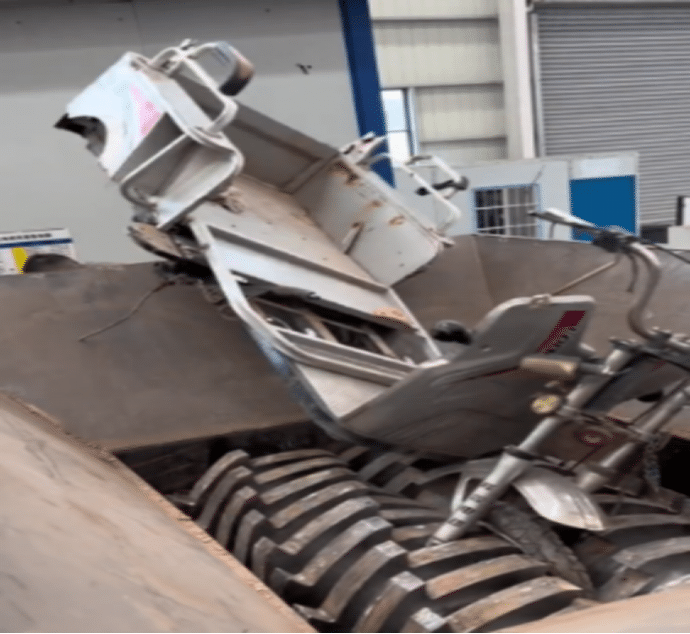 严禁“爆破物”入料:破碎前必须确保车辆已进行深度预处理,彻底移除蓄电池、油箱(及残留燃油)、安全气囊、机油、冷却液等。任何一项遗漏都可能导致爆炸、火灾或环境污染。